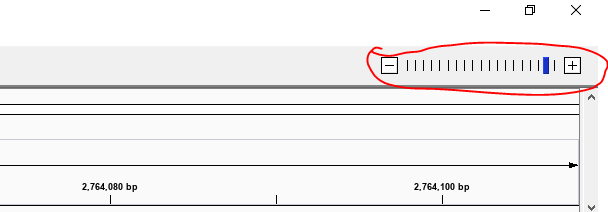 프로그램 오른쪽 윗부분(빨간 동그라미) 부분을 수정하면 좀더 넓은지역을, 좁은지역을 변경해가면서 coverage, 염기서열을 확인할 수 있습니다. SMALL'genome data analysis > Genome analysis' 카테고리의 다른 글